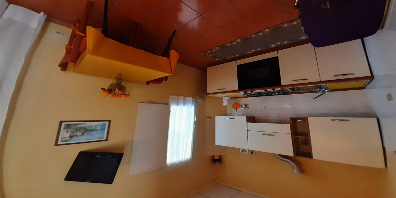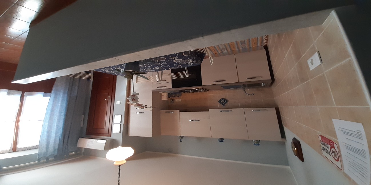 In cucina ; tavolo, sedie ,lavastoviglie ,microonde, frigorifero , frizer ,stoviglie .
