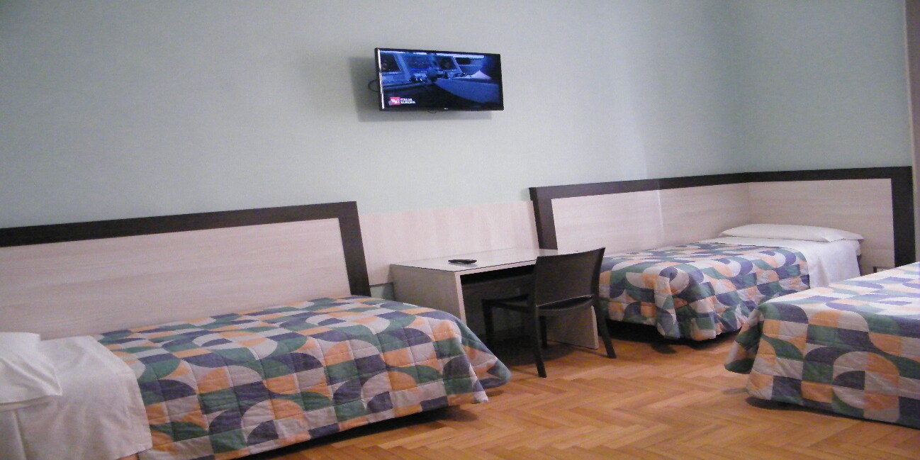 LA CAMERA DA LETTO , è composta da 1 letto matrimoniale e 3 letti singoli ,scrivania ,tv .armadio , bagno in camera , phon , wi-fi gratis .